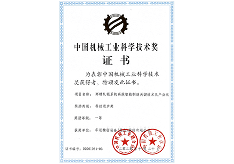 機械工業科學技術一等獎
