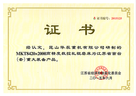 江蘇省首臺套證書MKT8420-2015
